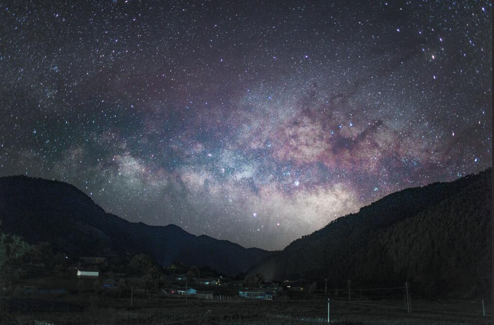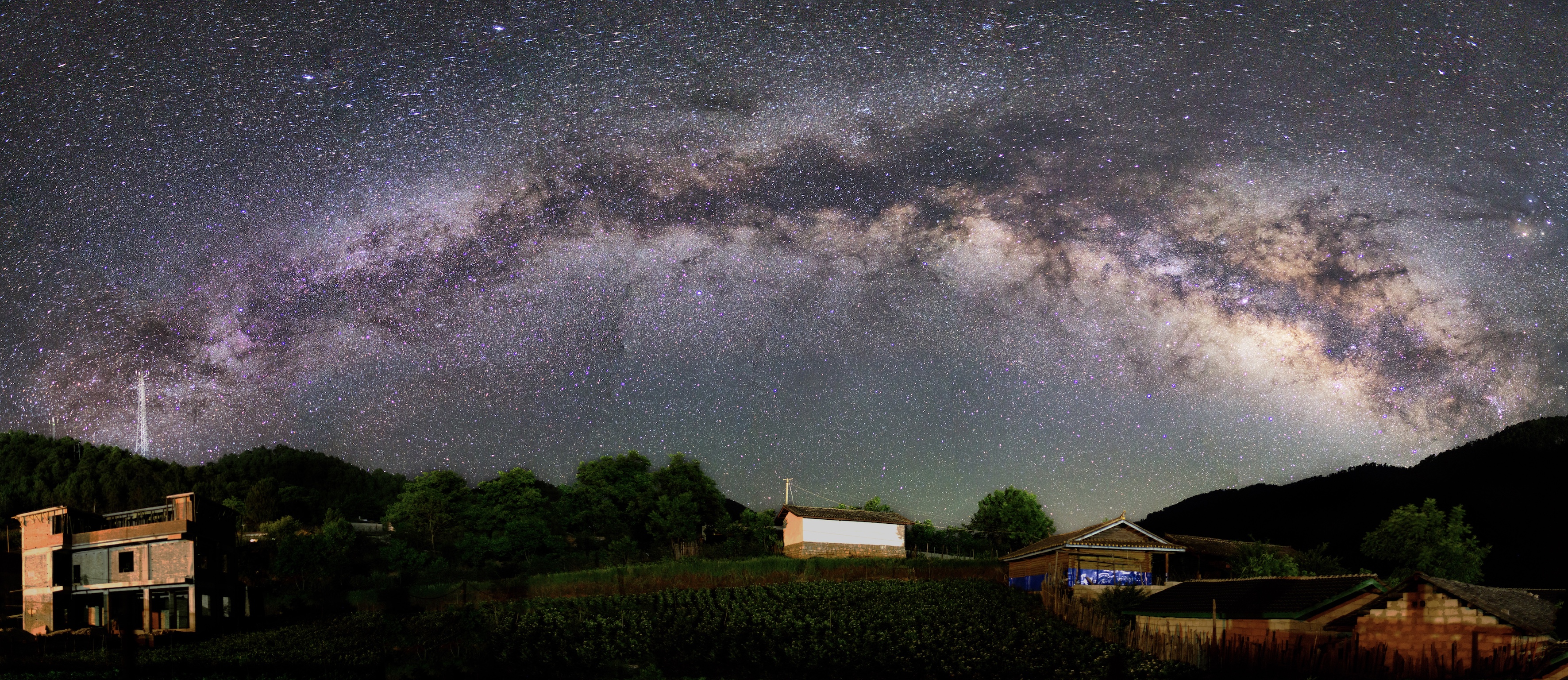 The Milky Way Arch over a village in Xiaoliang Mountain, Yunnan province.
